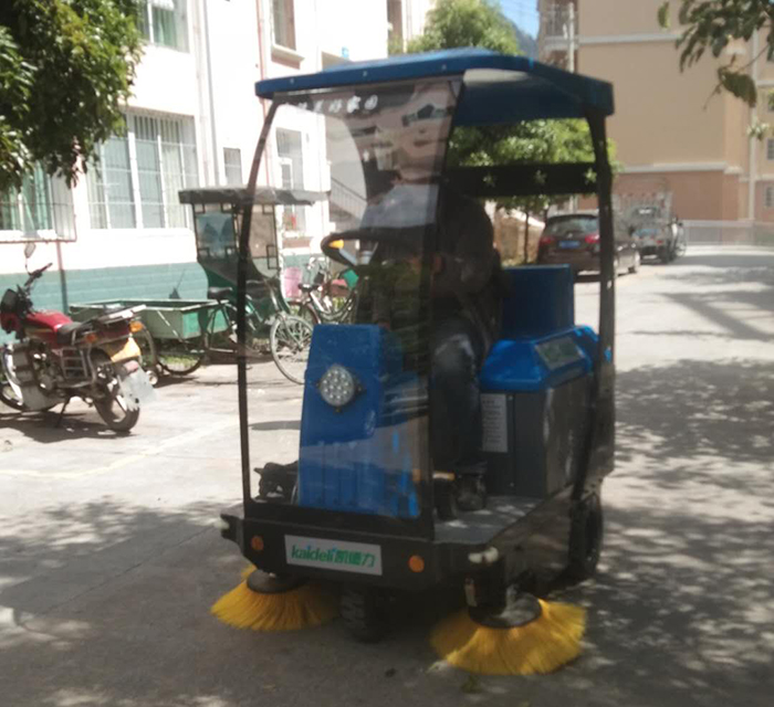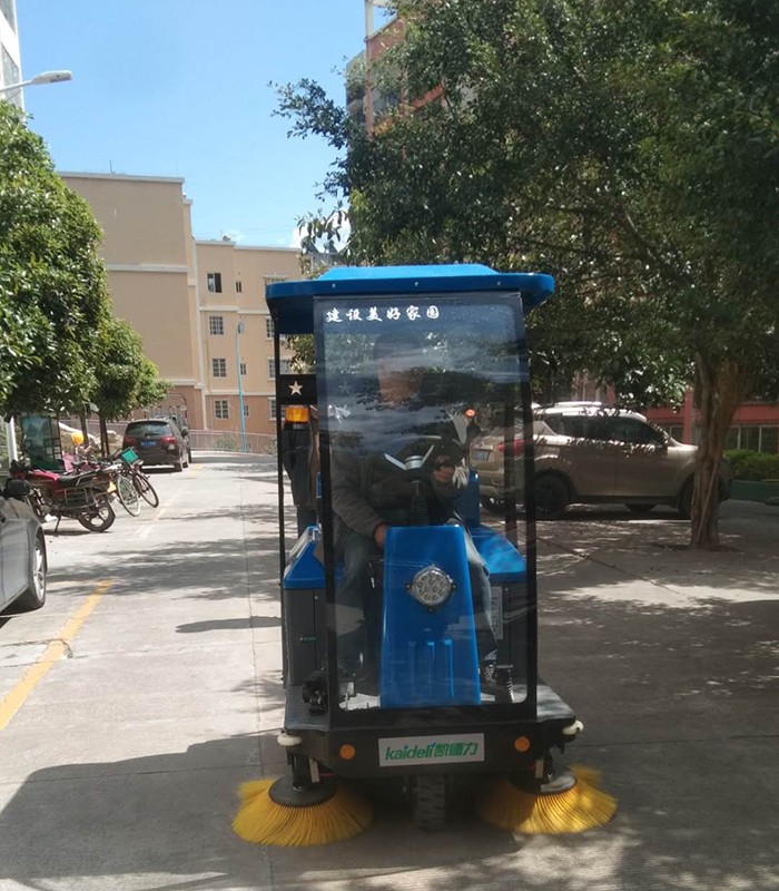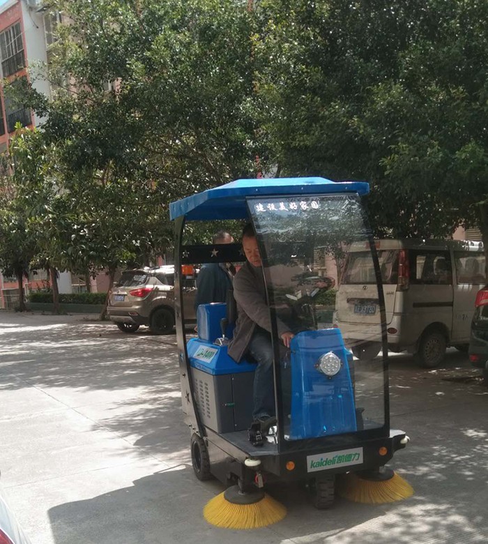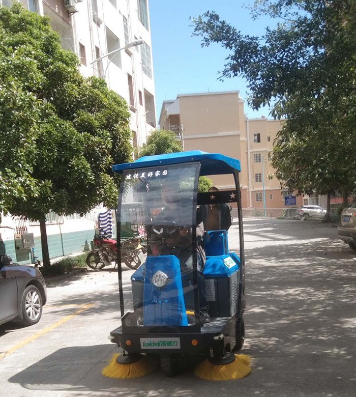 物业采购凯德力扫地机为小区道路、停车场清扫消毒